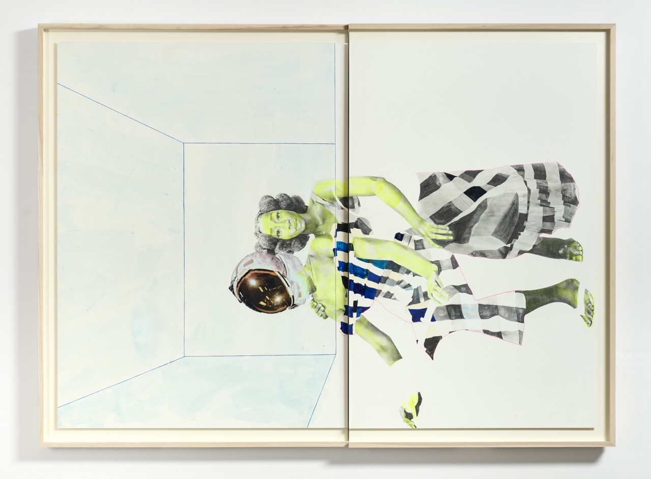 While each shift in composition may seem minor, collectively they create a disorienting and reorienting experience for the viewer, influencing how the artworks relate to the exhibition space. amanze’s characters and the various forms, engaging materials such as graphite, ink, and photo transfers, almost seem to be in some abstract battle with the emptiness that surrounds them. What’s at stake is the age-old tension between form and function, with the show adding tricky nuance to what it means to be a Black femme painter in an ostensibly white world.Â