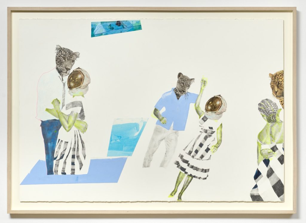 amanze conceptualises her drawings as physically enterable rooms. As well as the artworks on show, most of which are large scale, the gallery space is imposing—reminiscent of most rooms we inhabit—flooded with whiteness. When there was colour, it was blue or green, mostly cold colours, mimicking the theme of the pool—save the comforting characters with varying skin surfaces and tones. While the surfaces were never soft or warm, her figures were. Strikingly recognisable and quite pleasing in their pristine familiarity.Â