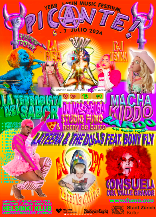 SF: The PICANTE! Festival is a common project with our Argentinien network of artists. They asked us to play in Zürich and find housing for them. This initially was the start of the festival. There is a highly commercial Latin music festival in our neighbourhood called the CALIENTE. It emerged from a free street festival to a closed highly commercial event. Mainly we would like to create a network to establish a queer:feminist latinxs “Contra Caliente” and we also hacked their aesthetics.Â