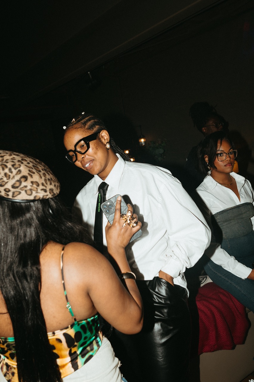 The evening’s centrepiece was a fifty-minute panel led by Nthabiseng Mushi, bringing together creative powerhouses like brand architect and digital maven Mike G, the multi-talented tech-and-art fusionist Larissa Umulinga, finance pro turned DJ Anzo, headwear innovator Ebrimâ Badjie, and visionary stylist Thando Motswalo herself—the driving force behind The Meet. This wasn’t just talk; it was a compelling dialogue about creativity, authenticity, and the often-overlooked journey of African fashion. Each panelist brought a distinct perspective, sharing stories about their paths, their passions, and their commitment to bringing African culture into the limelight. To bring the formalities of the night to a close, Ugandan artist Sweet Cocoa serenaded the crowd with covers from John Legend, Rae Khalil and Lady Wray.
