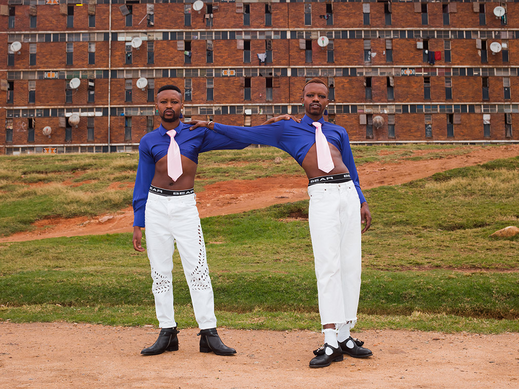 FAKA formally established themselves in 2015. It started with a Facebook friend request and since then Desire and Fela have had reason to thank the internet for their divine connection. Like them, we also have various online platforms to thank for the front row seat we have to the becoming of a duo that has been representing and creating a sense of community. Their virtual following is extensive. From their #Siyakaka hashtag that caught like wildfire to their Instagram pages that beautifully showcase their breathtaking black queer bodies doing the most.